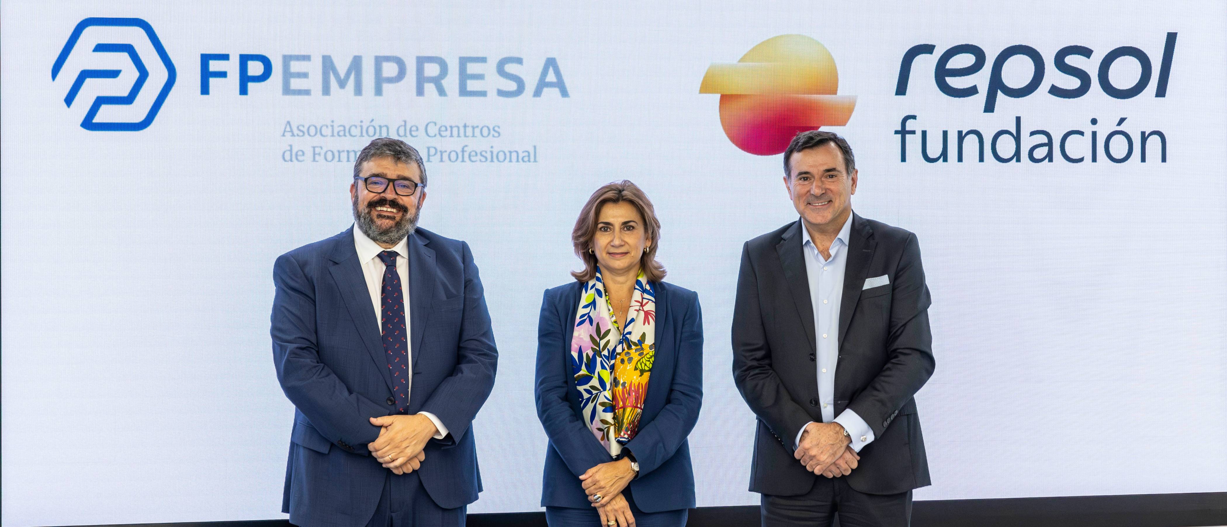 La firma ha contado con la presencia de Carmen Muñoz, directora general de Personas y Organización de Repsol, António Calçada, director general de Fundación Repsol, y Luis García, presidente de FPEmpresa.